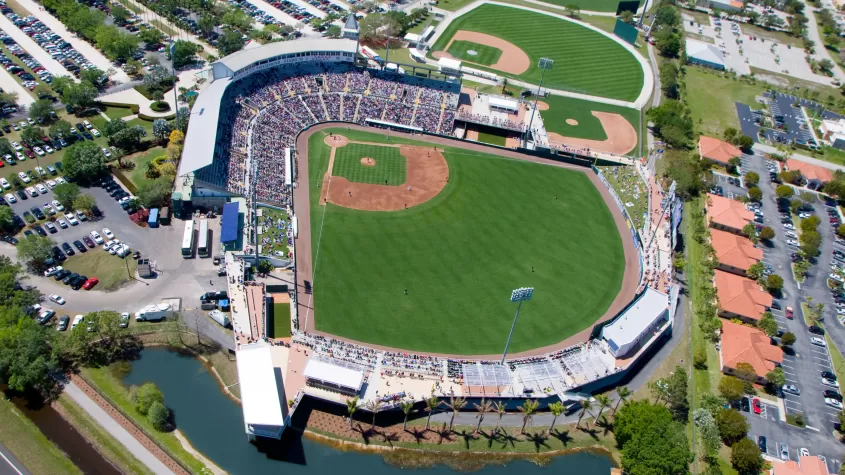 Hammond Stadium has a façade inspired by Louisville’s Churchill Downs, but the only races taking place here are to the bases. While the stadium might not have the capacity of Target Field in Minnesota, it is blessedly free of snow.