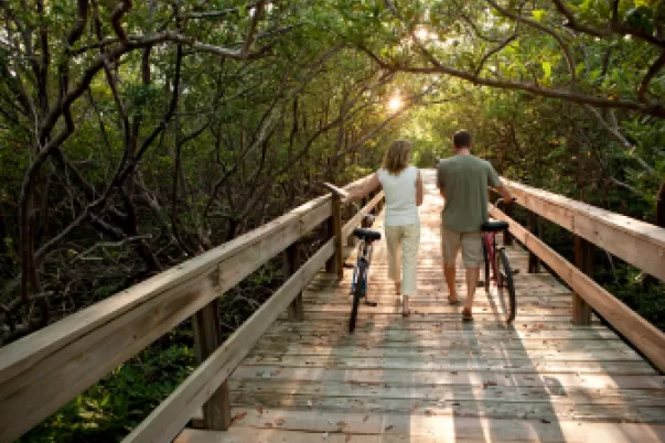 Walking and Biking You’ll find many areas, such as downtown neighborhoods, shopping plazas and along the islands and beaches, that
